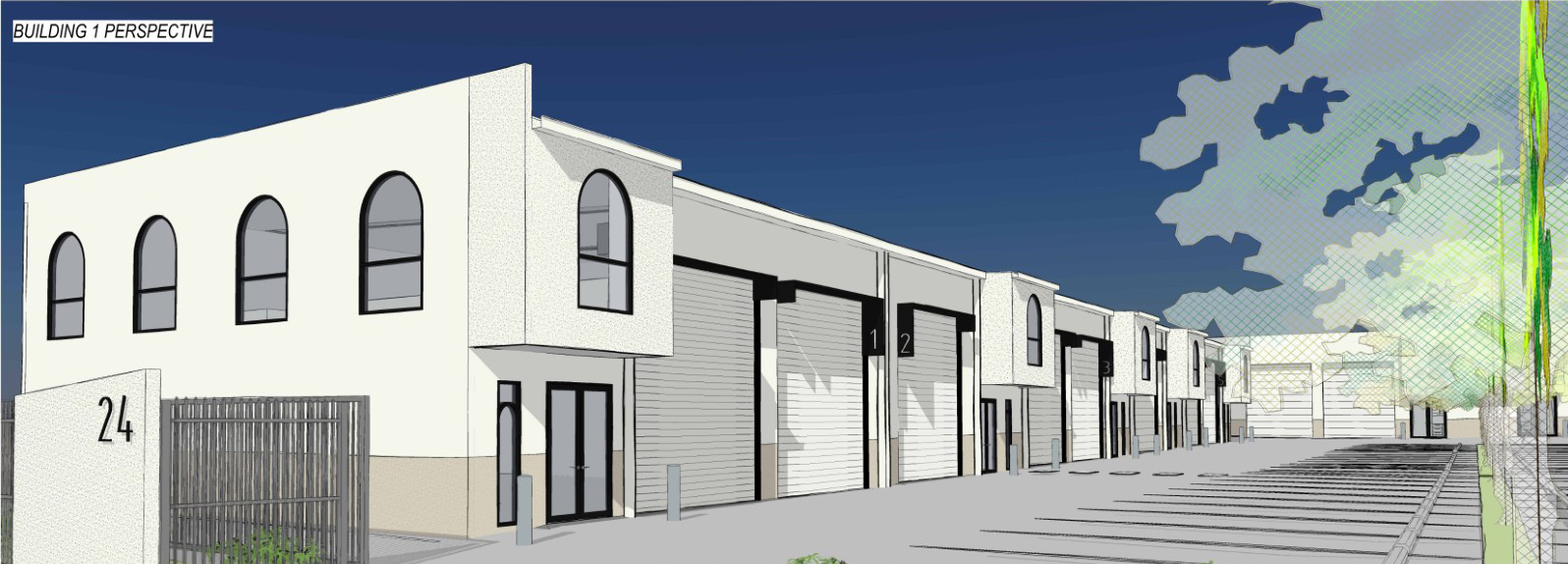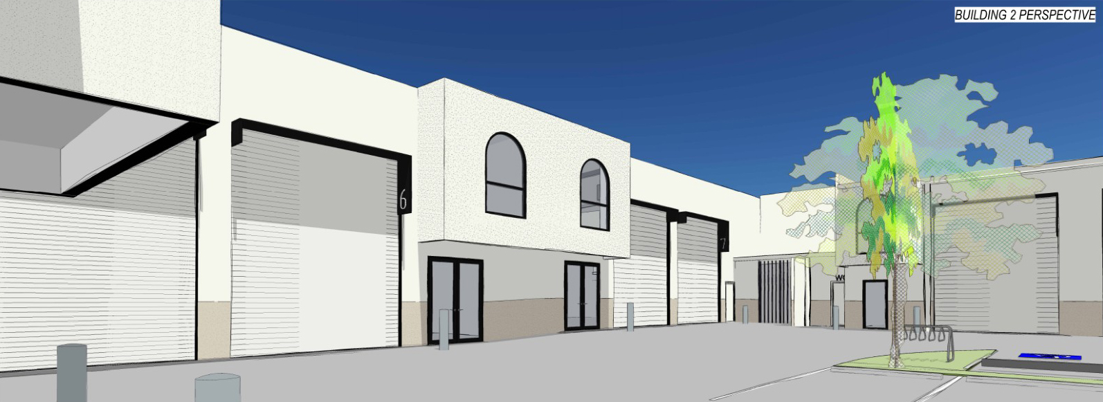 Each tenancy has been designed with primary storage and working areas adjacent to roller doors, with mezzanine levels providing administration space and amenities. The contemporary architectural design, complemented by integrated landscaping, enhances the Hub Crescent streetscape while delivering functional industrial facilities.