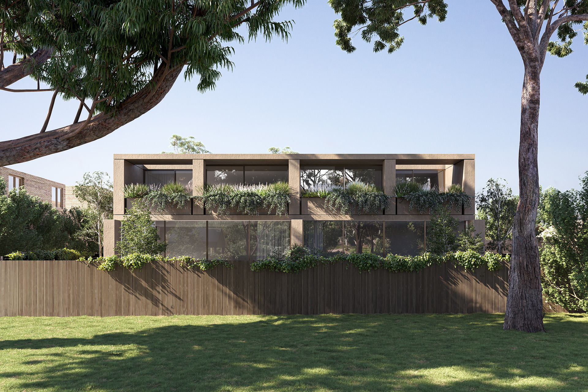 Located in the heart of Kew, Foley Park takes a thoughtful approach to boutique residential development. The six high-end apartments over basement car parking feature tactile materials including textured render, hit-and-miss brickwork, and natural stone. Large-format glazing frames views across Foley Reserve, while deep eaves provide privacy and passive shading.